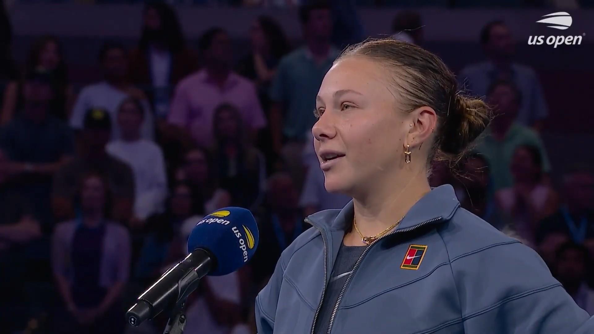 在2025年美网女子单打决赛0-2负于萨巴伦卡屈居亚军之后,阿尼西莫娃接受了采访。