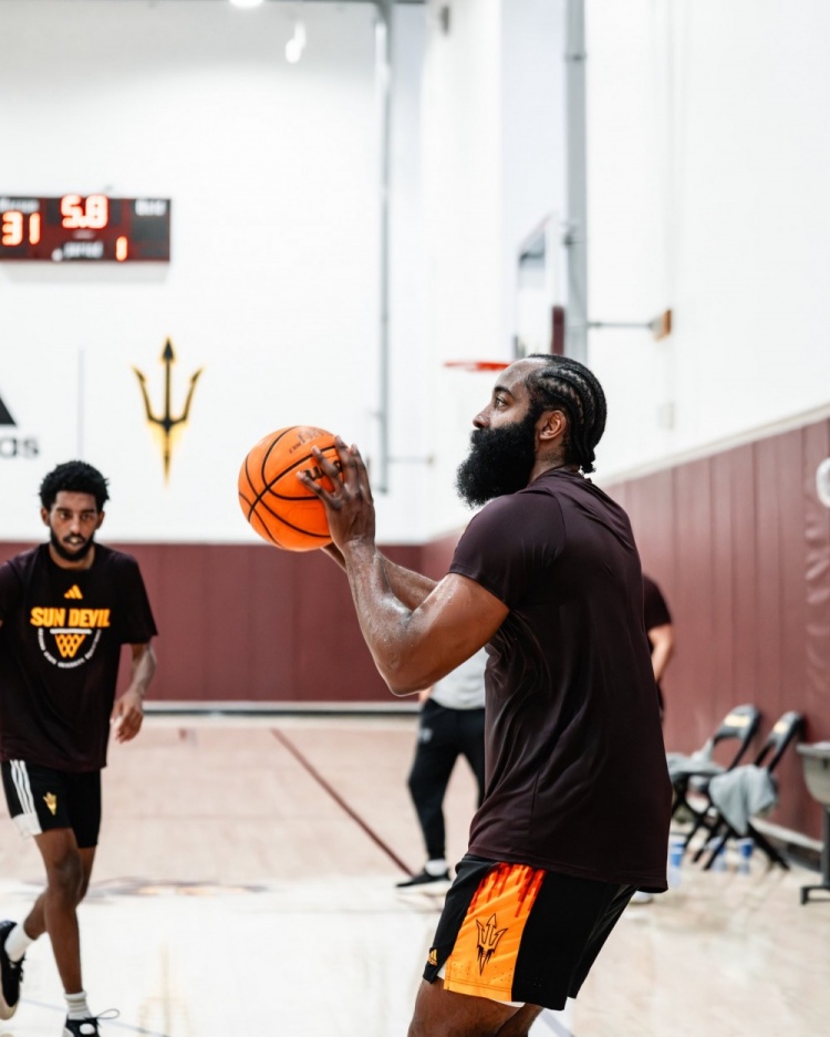 9月8日讯 亚利桑那州大男篮更新社媒,晒出了哈登回母校训练的照片。