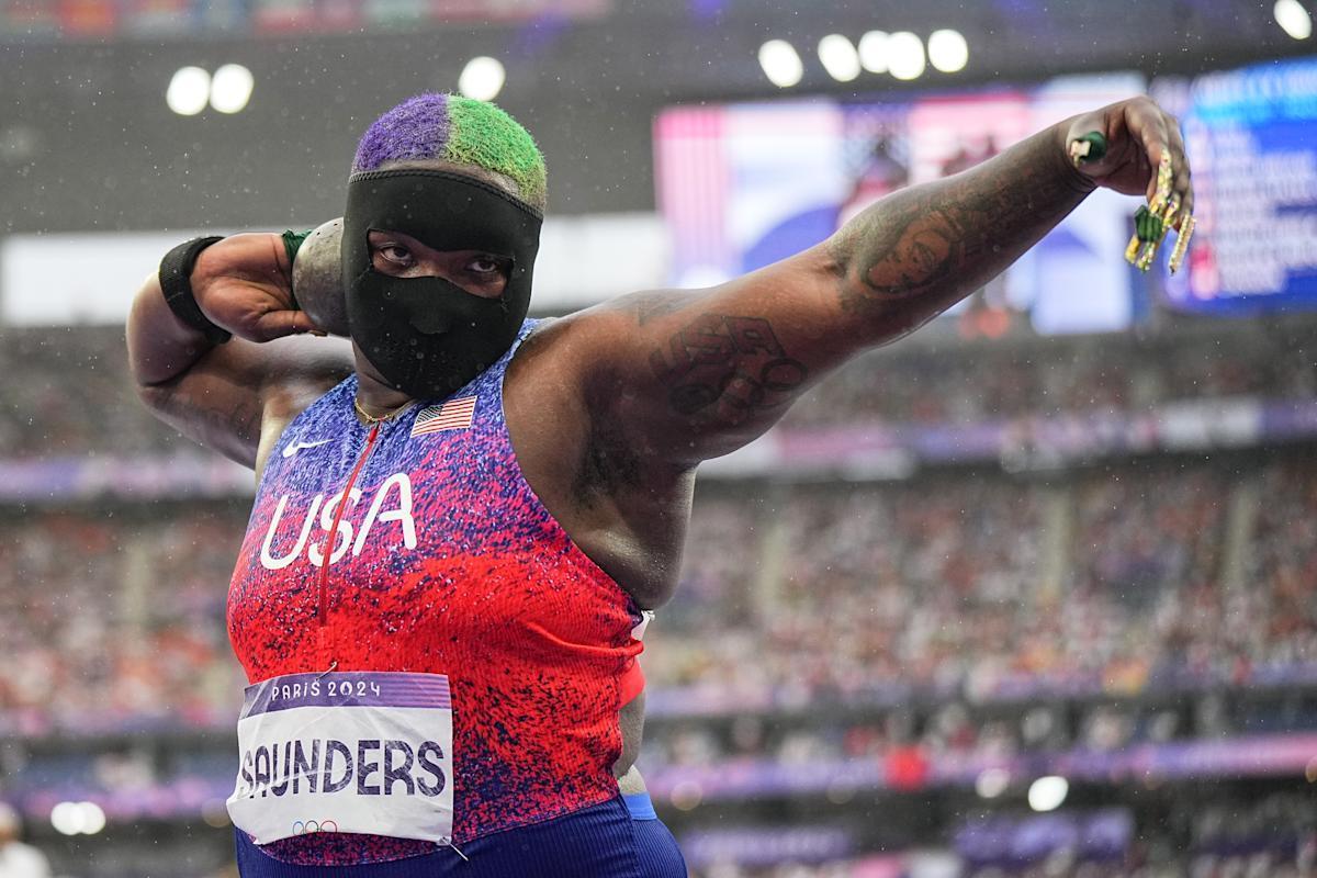 巴黎奥运会期间,桑德斯曾以全黑面具和墨镜完全遮盖面容的方式参加铅球资格赛,引发关注。她解释称此举旨在提升大众对铅球项目的关注度。